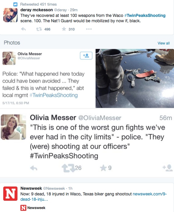 BREAKING NEWS, INTERNATIONAL NEWS, USA πΊπΈ Nine killed after shots fired between rival biker gangs in Waco, Texas #Waco May 17, 2015 The Template News, Current Affairs and Sport Website Leave a comment EIGHTEEN people injured in exchange between three gangs outside the Twin Peaks restaurant. 170 have charged with offences relating to organised crime – the figure has been revised from 192. TEMPLATE NEWS 2015 Share this: Click to share on X (Opens in new window) X Click to share on Facebook (Opens in new window) Facebook Click to share on LinkedIn (Opens in new window) LinkedIn Click to share on Tumblr (Opens in new window) Tumblr Click to share on Pinterest (Opens in new window) Pinterest Click to email a link to a friend (Opens in new window) Email Click to share on Reddit (Opens in new window) Reddit Click to share on WhatsApp (Opens in new window) WhatsApp Click to share on X (Opens in new window) X Like Loading... Related
