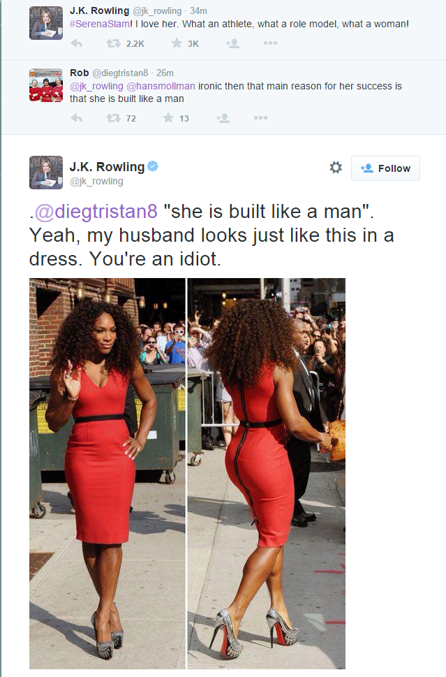 JK ROWLING COMES TO THE DEFENCE OF SERENA WILLIAMS #Wimbledon2015