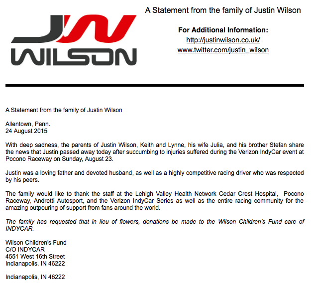 JUSTIN WILSON DIES AT 37 #JustinWilson #INDYCAR