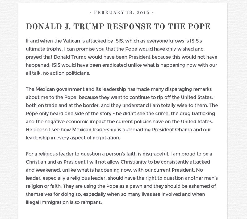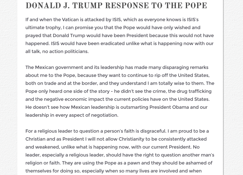 POPE SAYS TRUMP ‘NOT A CHRISTIAN’ – HERE’S TRUMP’S RESPONSE #DonaldTrump #Pope #NayabChohan #TemplateNews #DistantEchoes