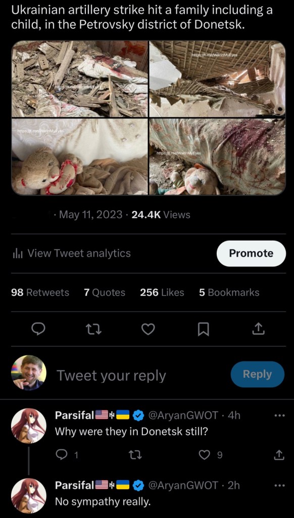 πŸͺ– SICKENING BLUE TICK TWITTER RESPONSE TO FAMILY – INCLUDING CHILD – BEING HIT BY #Ukraine ARTILERY STRIKE IN #Petrovsky, #Donetsk πŸ‡ΊπŸ‡¦ πŸ‡·πŸ‡Ί
