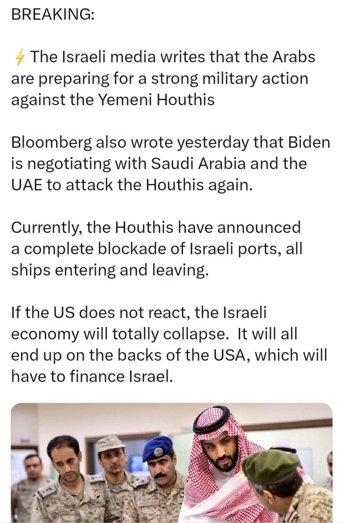 πŸ”₯ US EXPECTS IT’S ARAB PUPPETS, SAUDI ARABIA AND UAE, TO AID ISRAEL AND ATTACK YEMEN ONCE AGAIN .. YEMEN SAYS IT’S GOING TO BLOCK ALL SHIPS LEAVING ‘ISRAELI’ PORTS πŸ‡ΎπŸ‡ͺ – πŸ‡΅πŸ‡Έ