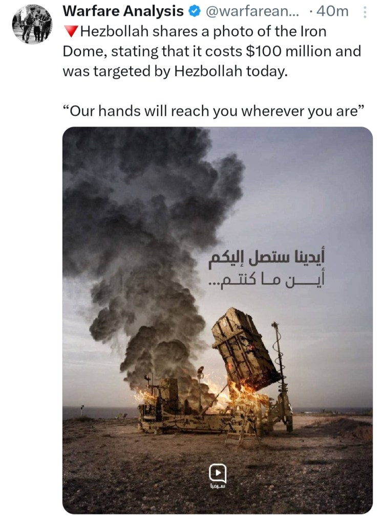 πŸ”₯ DAY 73 πŸ”₯ HEZB-ALLAH ‘TARGETED TWO ISRAELI IRON DOME PLATFORMS, NORTH OF KABRI, WITH ARTILERY ACHIEVING PRECISE HITS’ πŸš€ πŸ‡±πŸ‡§ ✌️ πŸ‡΅πŸ‡Έ