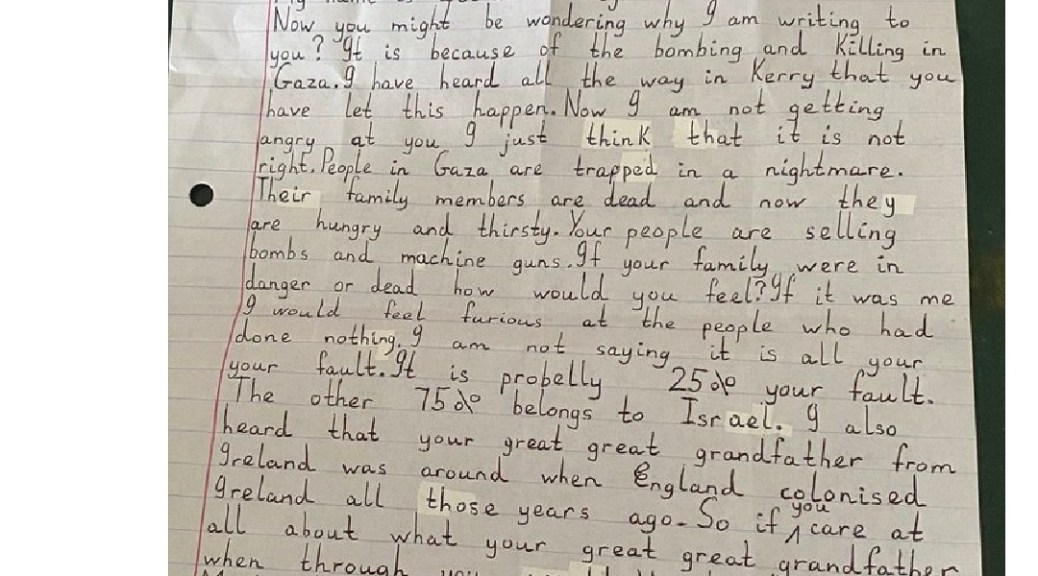 πŸ‘§ πŸ‘¦ πŸ‘Ά 9-YEAR-OLD DOIREANN FOLEY SENDS THIS LETTER TO JOE BIDEN: ‘I AM WRITING TO YOU.. BECAUSE OF THE BOMBING AND KILLING IN GAZA’ πŸŽ„