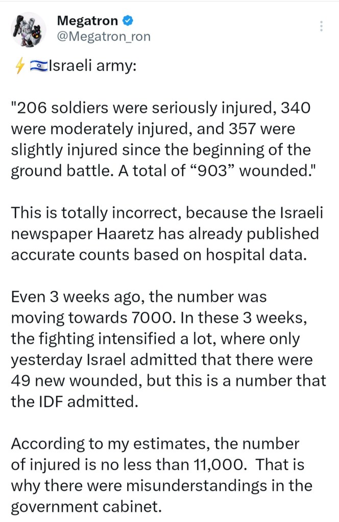 🚁 WHO DO YOU THINK YOU ARE KIDDING MR YAHU .. 903 WOUNDED ISRAELI ‘SOLDIERS’ OR IS IT 11,000 πŸ’€ ☠️ ⚠️ πŸͺ–