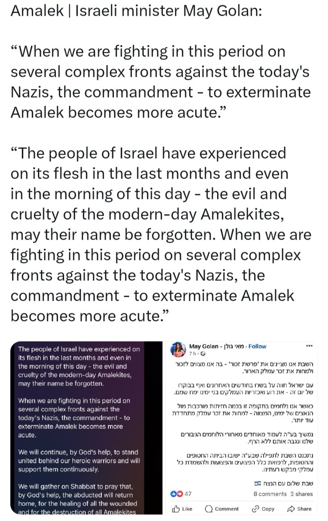 🔪 ‘EXTERMINATE AMALEK’ .. MAY GOLAN, ISRAEL’S MINISTER FOR SOCIAL EQUALITY AND WOMEN’S RIGHTS 🦎 ⚖️  🇺🇸 – 🇮🇱
