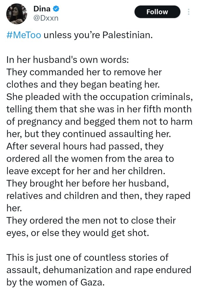 ‘ISRAELI SOLDIERS RAPED PREGNANT WOMAN IN FRONT OF HER HUSBAND AND CHILDREN’