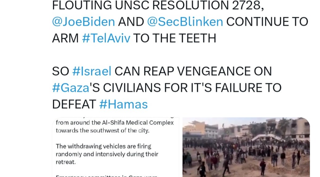 Previous Postβ›ͺ️ GAZA’S CHRISTIAN COMMUNITY FACES EXTINCTION THIS EASTER Β  ✝️ πŸ‡΅πŸ‡Έ ✌️ πŸ‡΅πŸ‡ΈΒ Next PostπŸ”₯ DAY 178 πŸ”₯ ISRAEL’S SAVAGE SIEGE OF AL SHIFA HOSPITAL  πŸ₯ πŸ‡΅πŸ‡Έ ✌️ πŸ‡΅πŸ‡Έ