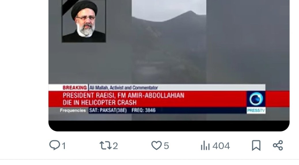 🕊 IRAN’S PRESIDENT HAS BEEN KILLED IN HELICOPTER CRASH – STATE MEDIA CONFIRMS  🇮🇷