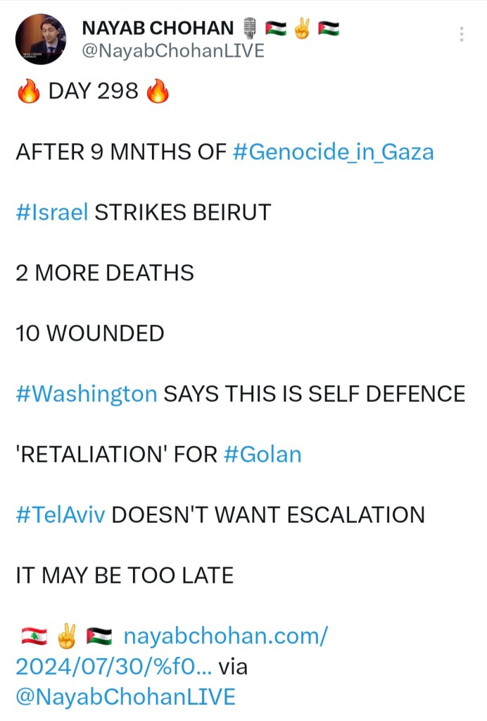 🔥 DAY 298 🔥 MESSAGE FROM SITE OF ISRAEL’S LATEST ATROCITY IN BEIRUT 🇱🇧 ✌️ 🇵🇸