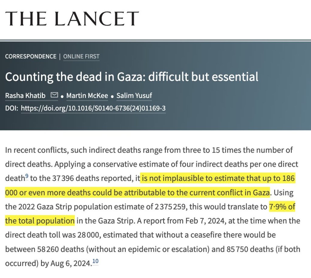 πŸ”₯ DAY 276 πŸ”₯ ALMOST 8% OF GAZA’S POPULATION HAS BEEN KILLED BY ISRAEL – THE LANCET πŸ‡΅πŸ‡Έ ✌️ πŸ‡΅πŸ‡Έ