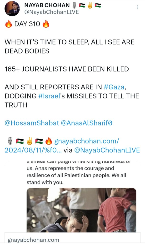 🔥 DAY 310 🔥 WHEN IT’S TIME TO SLEEP, ALL I SEE ARE DEAD BODIES.. THIS IS PALESTINIAN JOURNALIST HOSSAM SHABAT REPORTING FROM GAZA 🎙 🇵🇸 ✌️ 🇵🇸 🔥