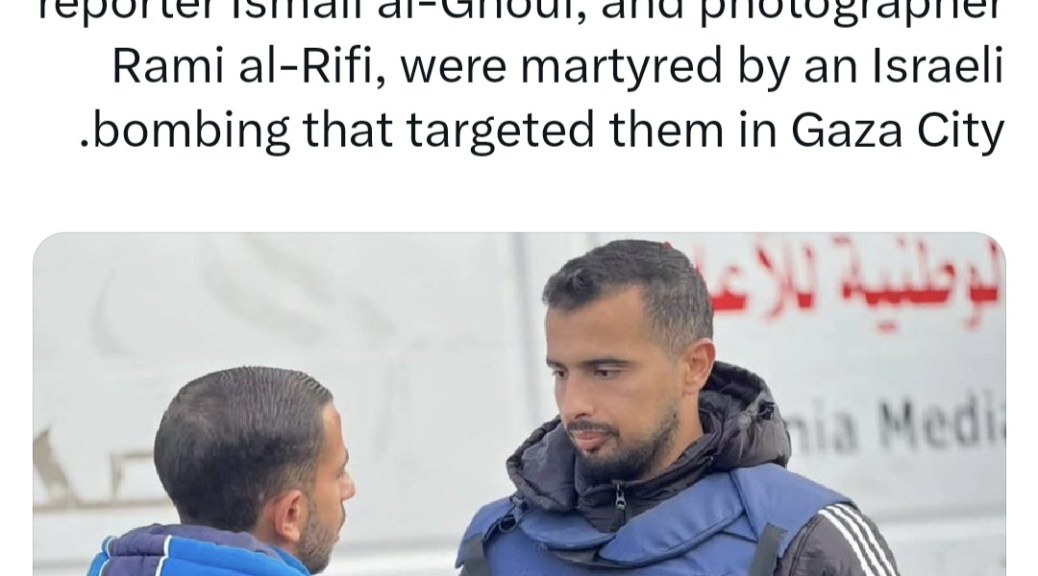 πŸ”₯ DAY 299 πŸ”₯ AL JAZEERA’SΒ  ISMAIL AL-GHOUL IS THE LATEST JOURNALIST TO BE KILLED BY ISRAEL πŸŽ™ πŸ“Ή πŸ‡΅πŸ‡Έ ✌️ πŸ‡΅πŸ‡ΈΒ