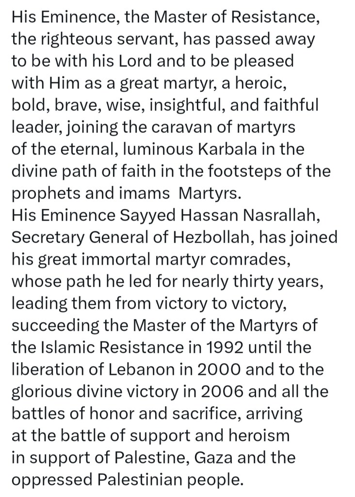 HEZB-ALLAH STATEMENT