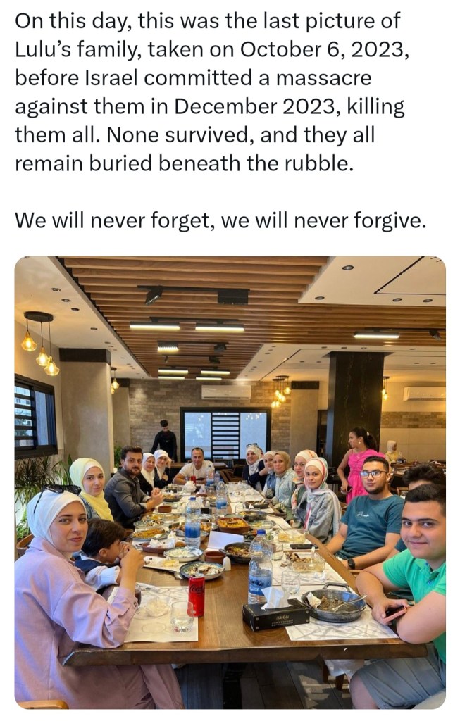 πŸ”₯ DAY 366 πŸ”₯ THE LULU FAMILY POSE FOR A PICTURE ON OCT 6 2023..  ISRAEL KILLED EVERYONE, THEIR REMAINS ARE BURIED UNDER RUBBLE πŸ‡΅πŸ‡Έ ✌️ πŸ‡΅πŸ‡Έ