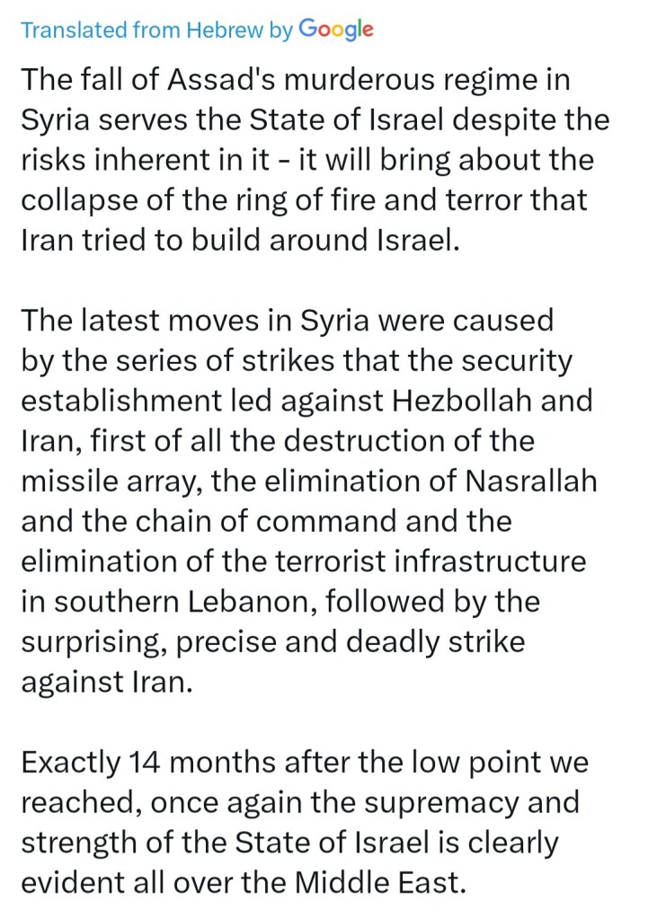 πŸ”₯ DAY 429 πŸ”₯ ASSAD’S FALL IN SYRIA ‘SERVES THE STATE OF ISRAEL’ – YOAV GALLANT πŸ’€ ☠️ πŸ”₯
