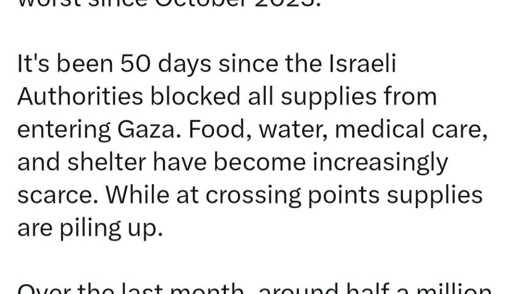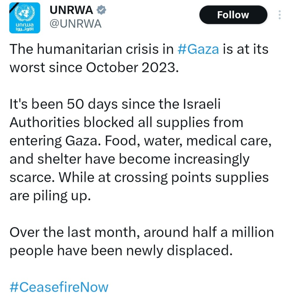 🚚 ISRAEL HAS BLOCKED ALL FOOD, WATER & AID ENTERING GAZA FOR 50 DAYS 🚫