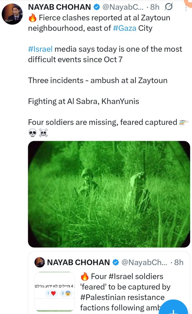 🦁 FOUR ISRAELI SOLDIERS MISSING AFTER HAMAS AMBUSH AT AL ZAYTOUN, GAZA 🚁 πŸ’€ ☠️