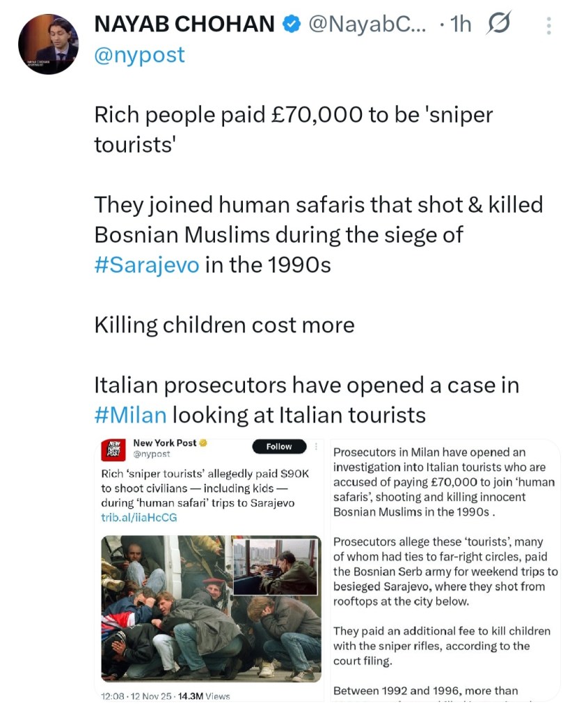 RICH PAID Β£70K+ TO SNIPE AT KIDS & CIVILIANS DURING SARAJEVO SIEGE