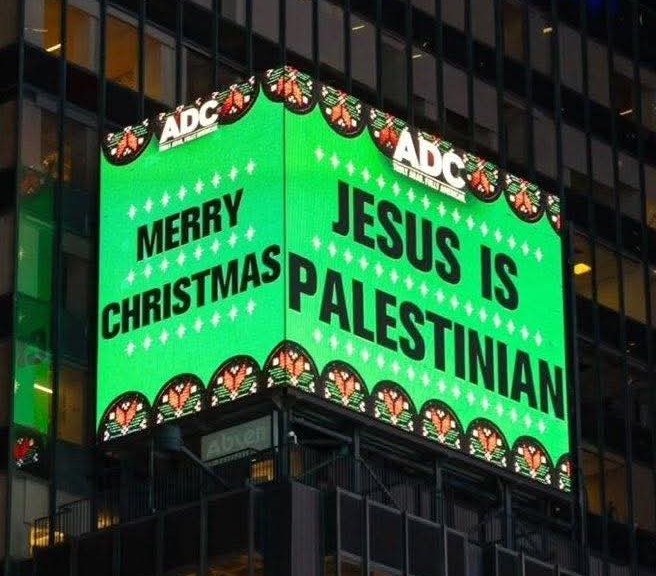 • MERRY CHRISTMAS, JESUS IS PALESTINIAN.. TIMES SQUARE, NEW YORK