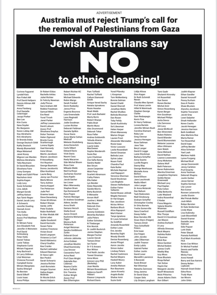 🗞 AUSTRALIA’S JEWS SAY NO TO ETHNIC CLEANSING OF PALESTINIANS FROM GAZA  🇦🇺 ✌️ 🇵🇸