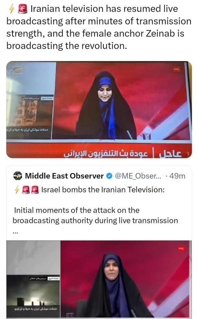 📺 IRANIAN TV IS BACK ON AIR AFTER ISRAEL BOMBS STATION HQ IN TEHRAN 🎙 🇮🇷 ✌️ 🇵🇸