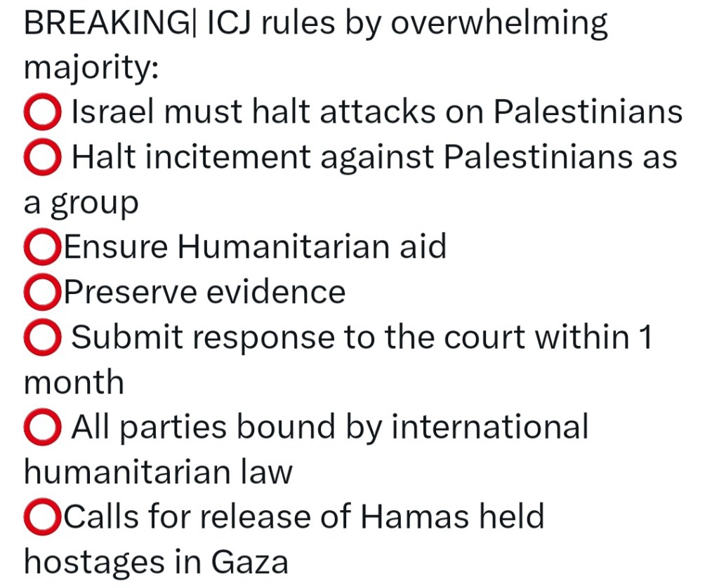 🔥 DAY 112 🔥 INTERNATIONAL COURT OF JUSTICE VOTES 15-2 TO APPLY PROVISIONAL MEASURES AGAINST ISRAEL FOR IT’S WAR ON PALESTINIANS OF GAZA ⚖️