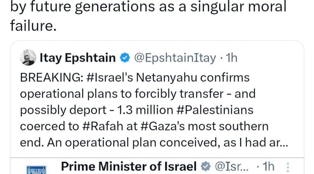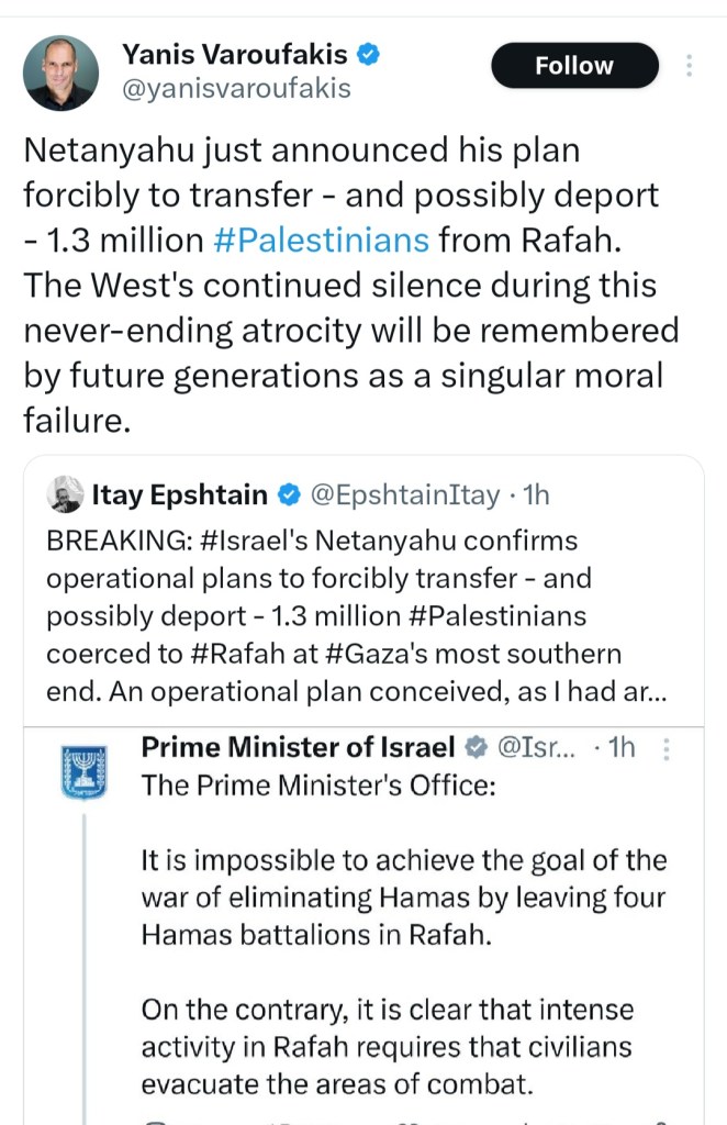 🔥 DAY 126 🔥 ISRAEL’S WESTERN BACKERS REMAIN SILENT AS THE BUTCHER OF GAZA PLOTS A FORCED DEPORTATION OF 1.3M PALESTINIANS FROM RAFAH, BEFORE MORE MILITARY ACTION ✋️ 🇵🇸 ✌️ 🇵🇸