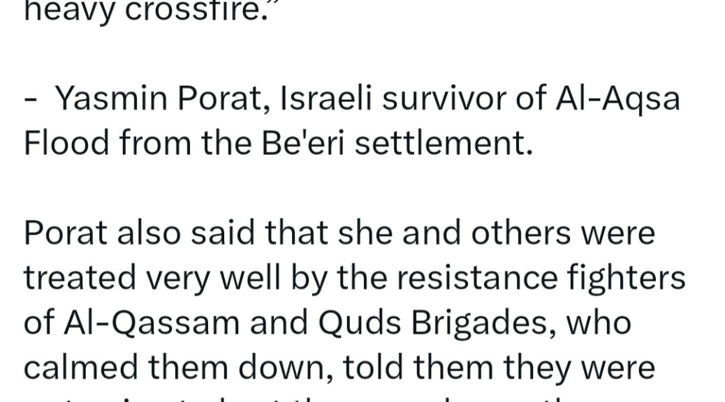 πŸͺ– ISRAEL KILLED IT’S OWN PEOPLE DURING CROSSFIRE WITH HAMAS AT BE’ERI SETTLEMENT, SURVIVOR SAYS πŸ”₯ YASMIN PORAT TOLD ISRAELI RADIO, HAMAS TREATED HER AND OTHERS ‘VERY WELL’ πŸ”₯