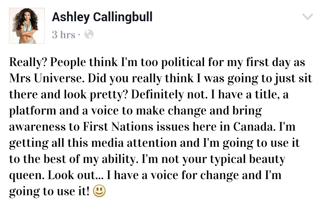 MISS UNIVERSE .. ON BEING POLITICAL #Canada