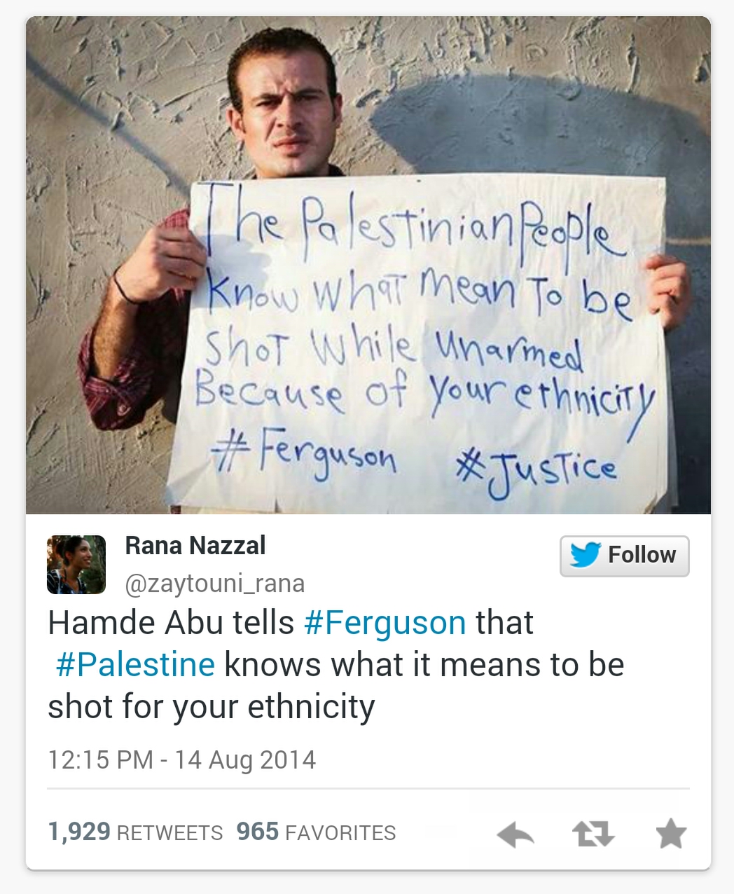 PALESTINIANS SUPPORT THE PEOPLE OF FERGUSON .. #Palestine #Ferguson #StLouis