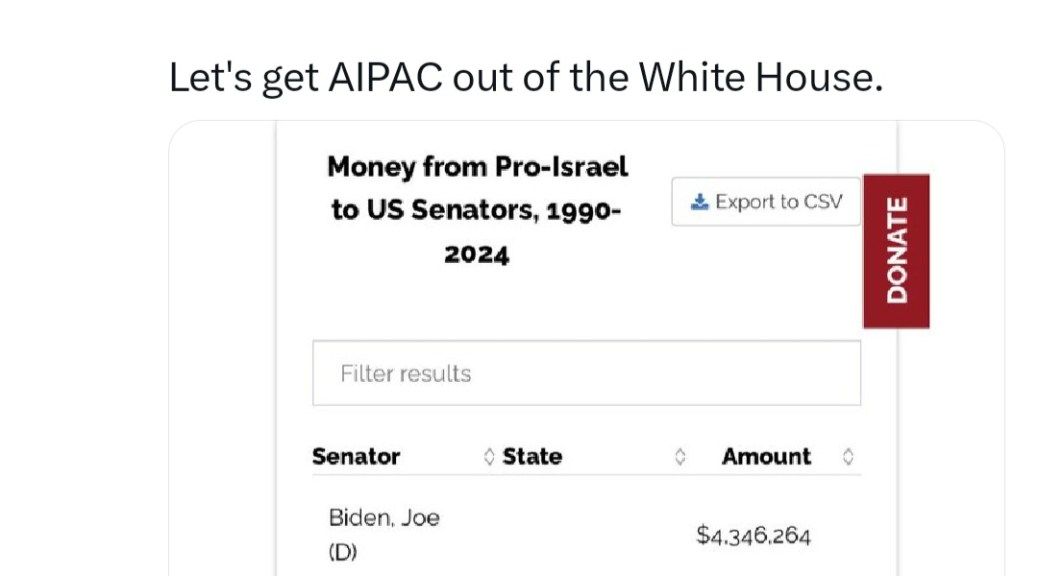 🦎 JOE BIDEN HAS TAKEN $4,346,246 FROM PRO-ISRAEL LOBBY GROUPS .. NO WONDER, GENGHIZ KHAN KILLED PALESTINIANS OF GAZA WITH SUCH AN ABSENT HEART 🦎 💀 ☠️ 🦴 🇺🇸- 🇮🇱