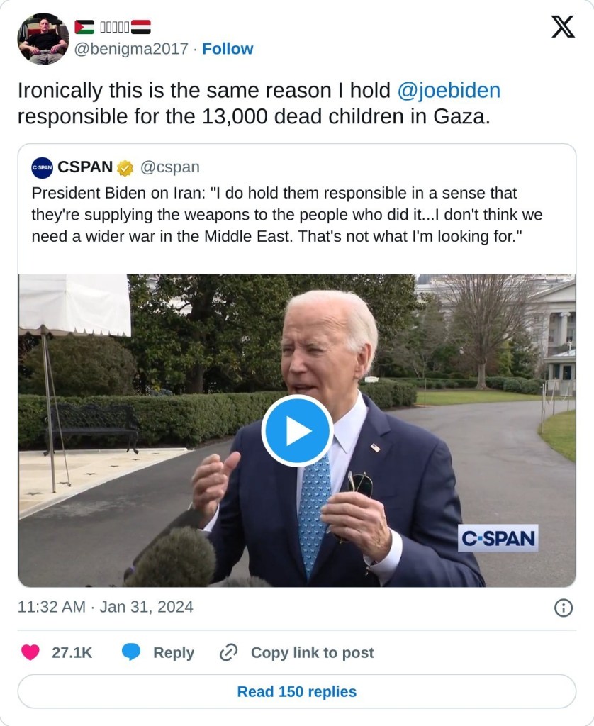🔥 DAY 119 🔥 AND YOU (JOE BIDEN) ARE RESPONSIBLE FOR THE MURDER OF 13,022 PALESTINIAN CHILDREN.. MR GENGHIZ KHAN (GENOCIDE JOE) YOU ARMED ISRAEL’S WAR MACHINE AS IT DESTROYED AND KILLED GAZA 🤡 🐠 🇺🇸 – 🇮🇱