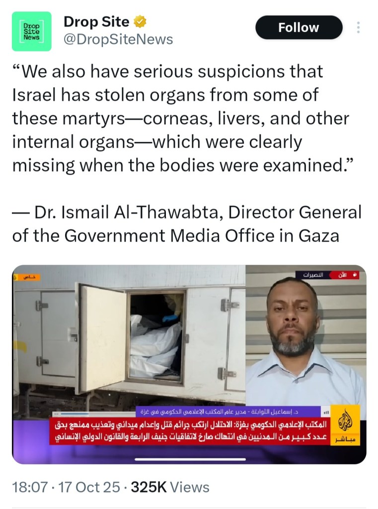 ISRAEL ‘STOLE ORGANS’ FROM GAZA’S DEAD