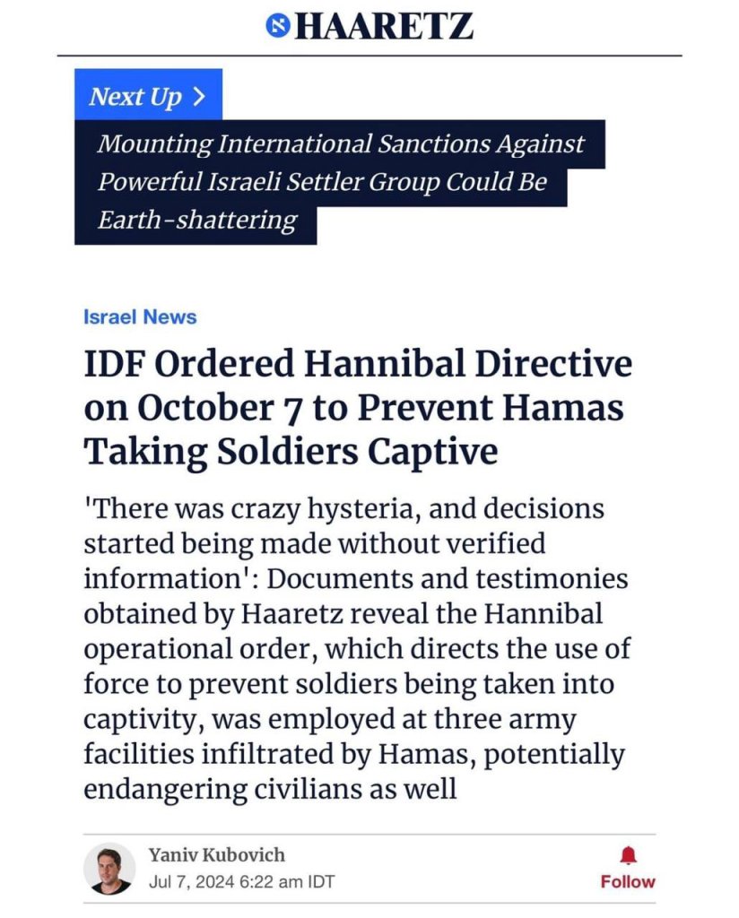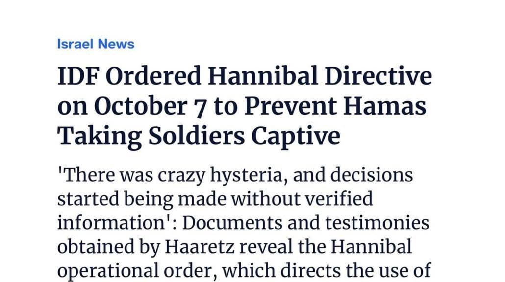 πŸ”₯ ISRAEL ORDERED ‘HANNIBAL DIRECTIVE’ TO PREVENT HAMAS FROM TAKING CAPTIVES ON OCT 7 – HAARTEZΒ  πŸ‡΅πŸ‡Έ ✌️ πŸ‡΅πŸ‡ΈΒ