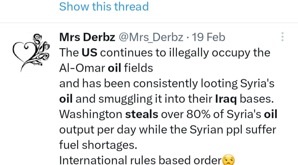 🪖 TWENTY YEARS AFTER TOPPLING SADDAM, THE #USA USES #Iraq BASES TO STORE STOLEN OIL AND WHEAT FROM #Raqqa #Syria 🛢 💣 🇸🇾 🇮🇶