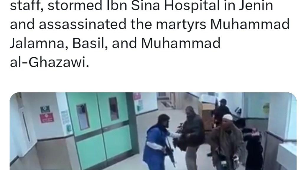 πŸ”₯ DAY 116 πŸ”₯ ISRAEL’S ‘SPECIAL FORCES’ POSED AS MEDICAL STAFF TO ASSASSINATE THREE PALESTINIAN RESISTANCE FIGHTERS LYING IN HOSPITAL BEDS, JENIN πŸ₯